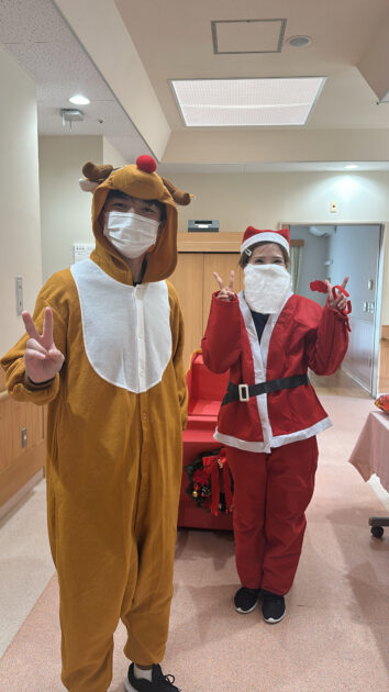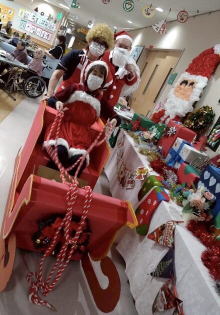 ホール内はクリスマスの装飾に包まれ、職員もサンタやトナカイの姿に変身。会場全体が一気にクリスマスムードとなり、季節の訪れを感じてもらえたのではないかと思います。