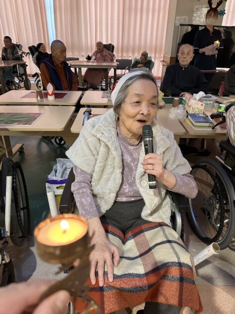 この日は12月生まれの方の誕生日会も同時に行いました。いつもとは少し違う雰囲気の中で、自然とお祝いの声も多く上がり、あたたかな時間となりました。