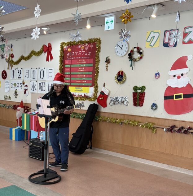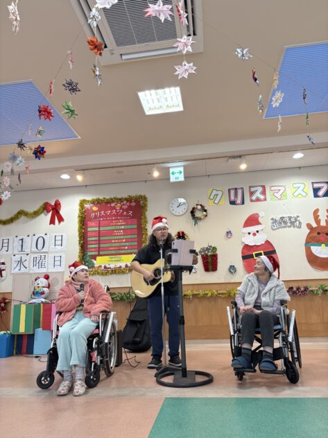 催し物では、職員による弾き語りコンサートをはじめ、クリスマスオーナメント作りやクリスマスケーキ作りを実施。皆さんそれぞれのペースで参加され、笑顔あふれるひとときとなりました。