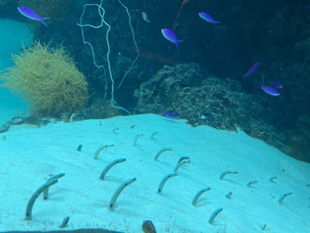 館内の「サンゴ礁の海」ではチンアナゴなどの熱帯魚が見られ、「ふくしまの川と沿岸」では福島県内の川の上流域から海岸までを再現した展示を見ることが出来ました。